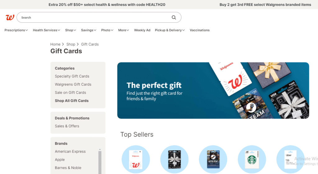 - In-store stock may be limited: Not every Walgreens store has the full range of gift card denominations available. If you’re looking for a specific amount or a branded package, it’s best to shop early or check availability online.