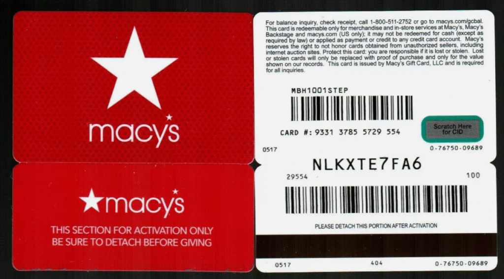 Macy’s is a household name, ensuring your purchase and redemption process is safe. For additional financial flexibility, services like Xbanka help users manage or exchange cards securely.